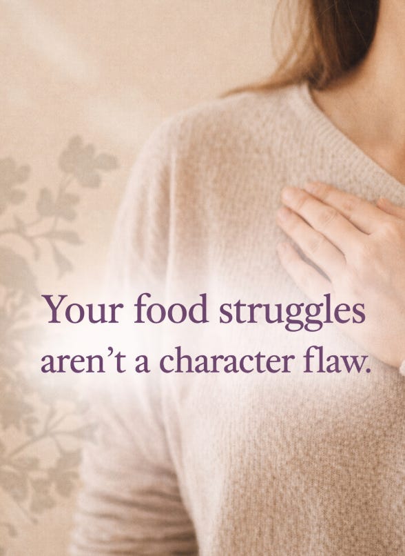 For years, I believed my struggles with food and body were all about willpower, determination, drive, resiliency, and grit…and when I failed, or slipped, or disappointed myself with what I called my ‘weakness’…I told myself I was emotional. Undisciplined, and just plain broken. I want you to know, that your food struggles are not a character flaw.